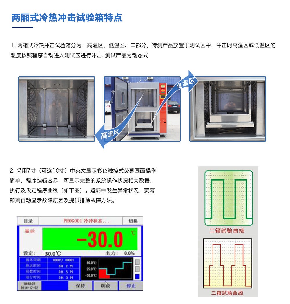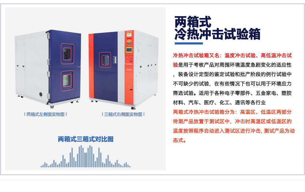 用途:兩廂式冷熱沖擊試驗箱又名溫度沖擊試驗箱或高低溫沖擊試驗箱是用于考核產(chǎn)品對周圍環(huán)境溫度急劇變化的適應(yīng)性,裝備設(shè)計定型的鑒定試驗和批產(chǎn)階段的例行試驗中不可缺少的試驗