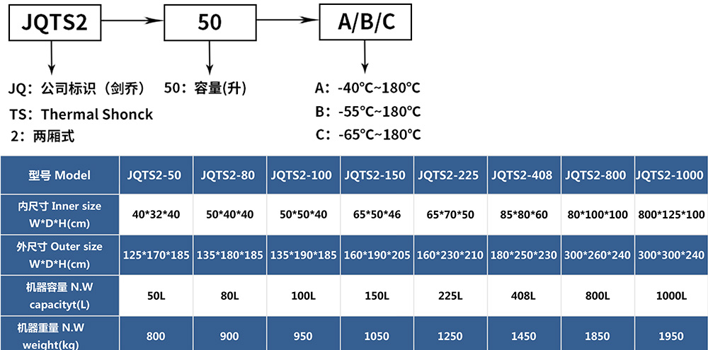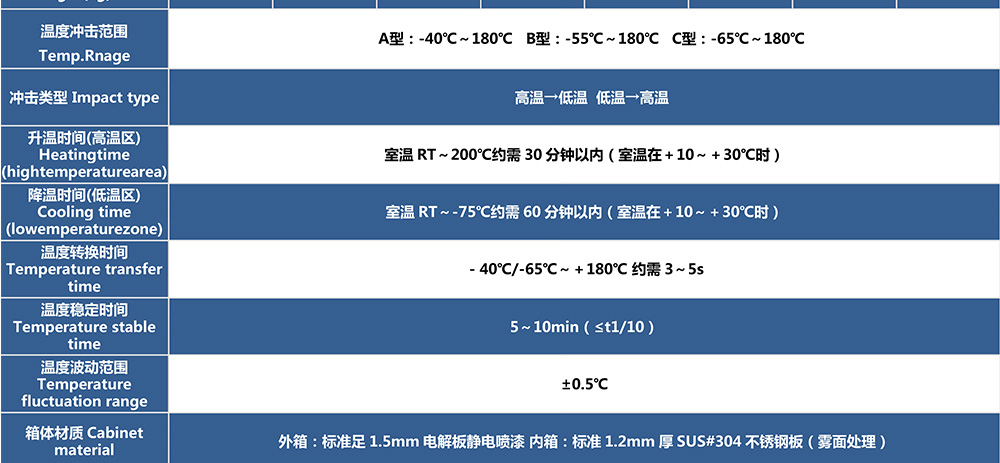 • 兩廂式冷熱沖擊試驗箱型號命名及參數(shù)表
