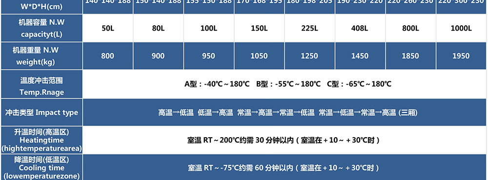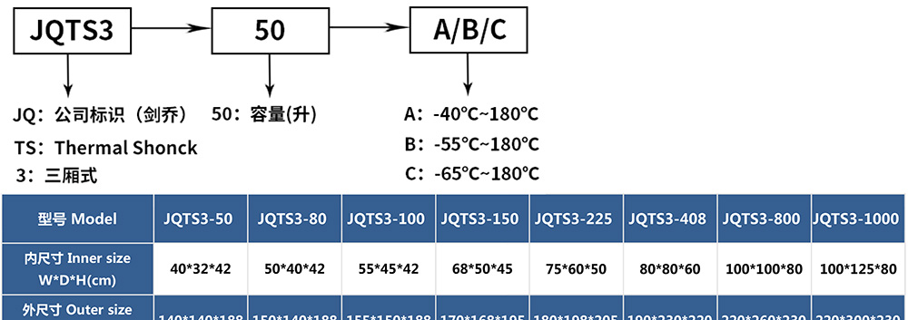 • 三廂式冷熱沖擊試驗(yàn)箱型號(hào)命名及參數(shù)表
