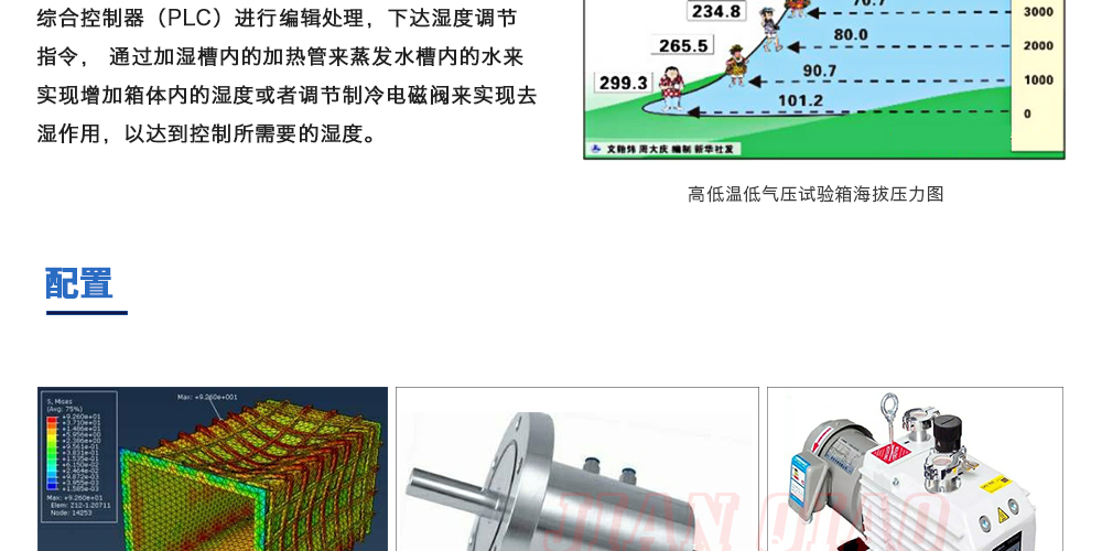 用途:高空低氣壓試驗箱主要用于試驗工件在低氣壓、高溫低溫、凝露、結霜單項或同時作用下的環境適應性與可靠性試驗,并或同時對試件通電進行電氣性能參數的測量。高空低氣壓試驗箱