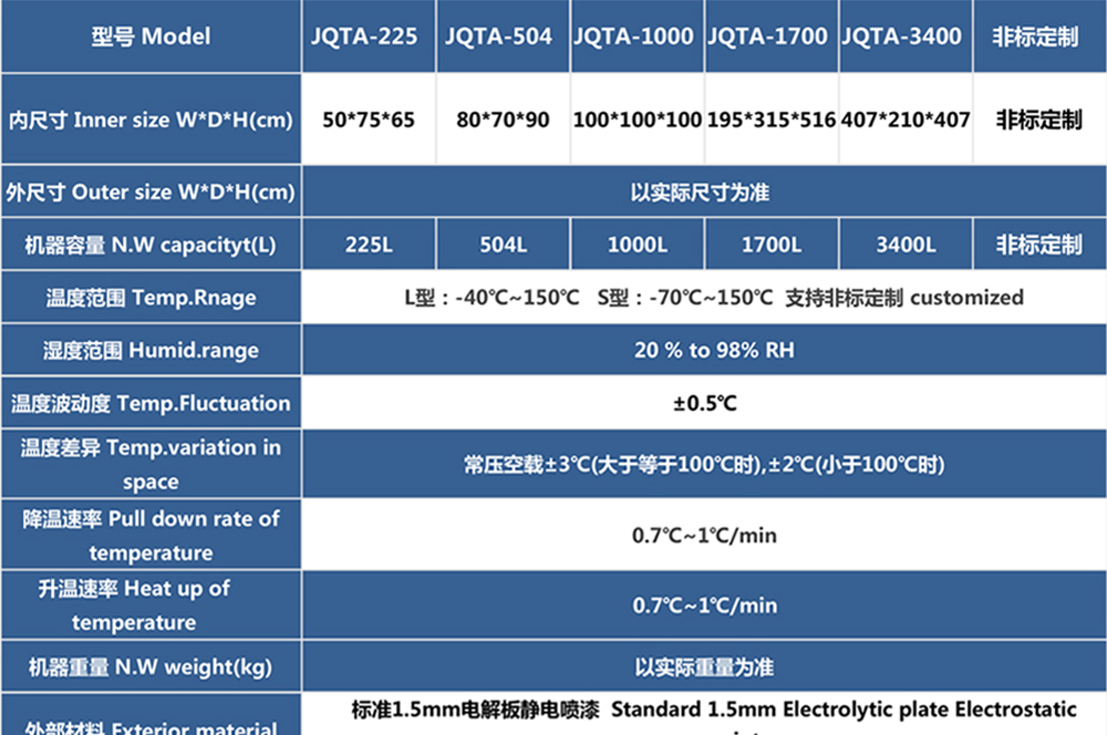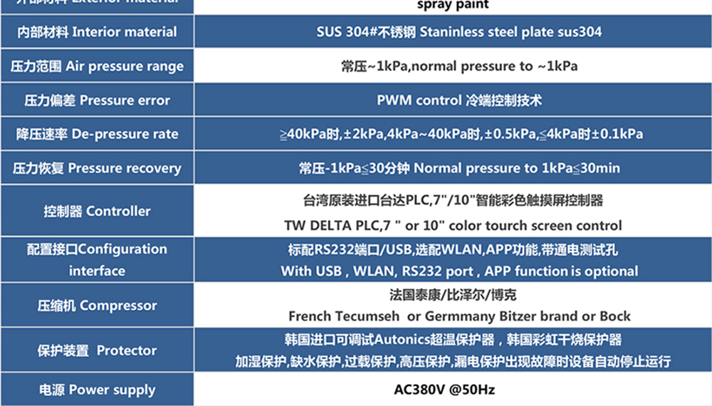 • 新款高低溫低氣壓試驗箱參數(shù)表