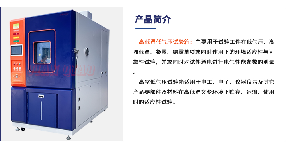 用途:高低溫低氣壓試驗箱:主要用于試驗工件在低氣壓、高溫低溫、凝露、結(jié)霜單項或同時作用下的環(huán)境適應(yīng)性與可靠性試驗,并或同時對試件通電進(jìn)行電氣性能參數(shù)的測量。
