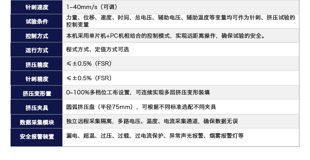 用途:動力電池?cái)D壓針刺一體機(jī)模擬各類動力鋰電池組在使用過程中,電池包遭受擠壓的情形,人工呈現(xiàn)電池在遭受擠壓時(shí)可能出現(xiàn)的不同狀況。 原理:電池包擠壓試驗(yàn)機(jī)將電池放在連個(gè)擠壓