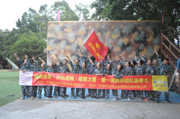 8:30準(zhǔn)時(shí)到達(dá)本次拓展訓(xùn)練場地,集合完畢后,在半山上展示了劍喬試驗(yàn)設(shè)備的拓展主題:挑戰(zhàn)自我,開拓思維,凝聚力量,做一流劍喬團(tuán)隊(duì)而奮斗!