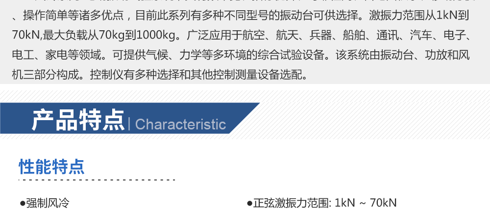 用途:風(fēng)冷電動(dòng)振動(dòng)系統(tǒng),推力大,承載能力強(qiáng),冷卻效率高。可分別完成三軸向的正弦振動(dòng)試驗(yàn)、寬帶隨機(jī)振動(dòng)試驗(yàn)以及經(jīng)典(半正弦、梯形、后峰齒)脈沖和沖擊響應(yīng)譜試驗(yàn)。